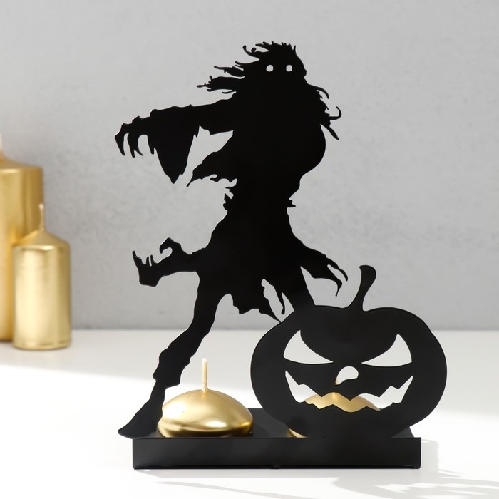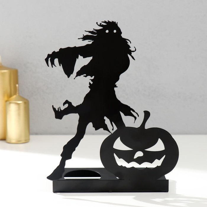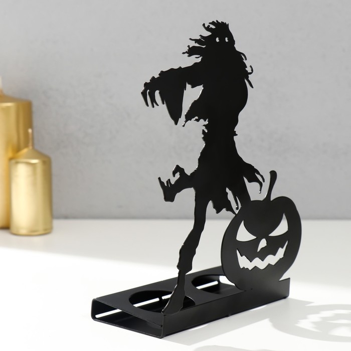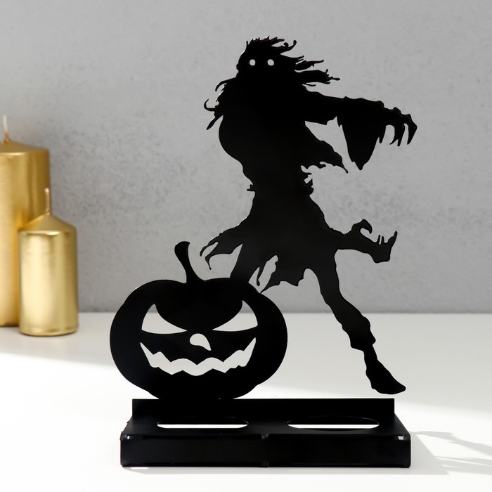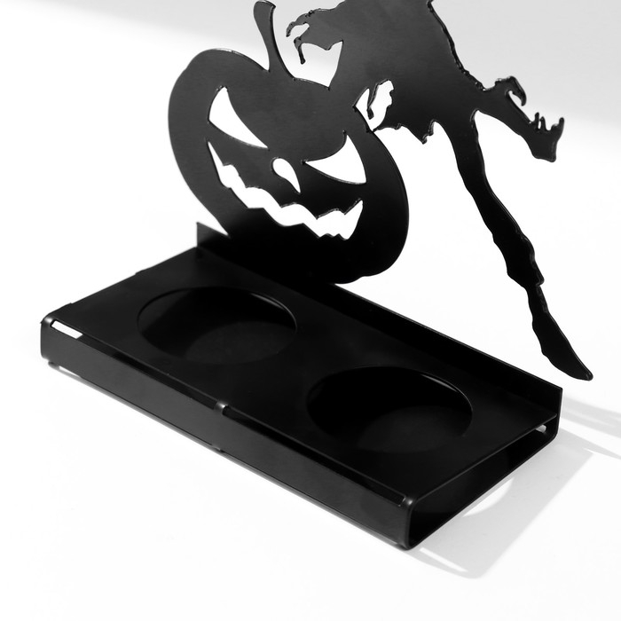 Подсвечник металл на 2 свечи "Хэллоуин. Монстр с тыквой" чёрный 18х13,5х6 см