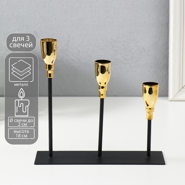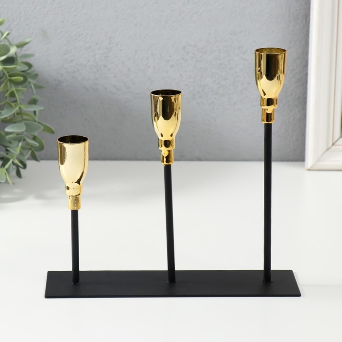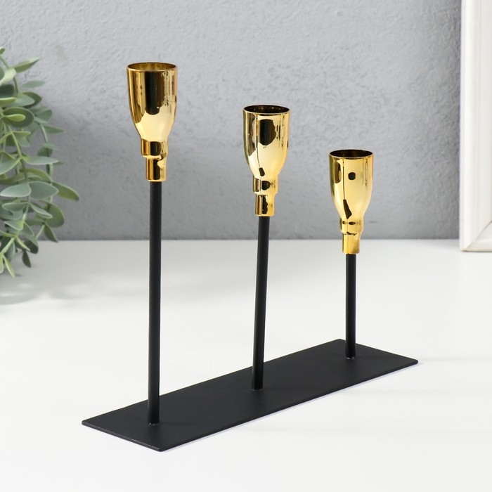 Подсвечник металл на 3 свечи "Ахиллес" чёрный с золотом 20х6х18 см