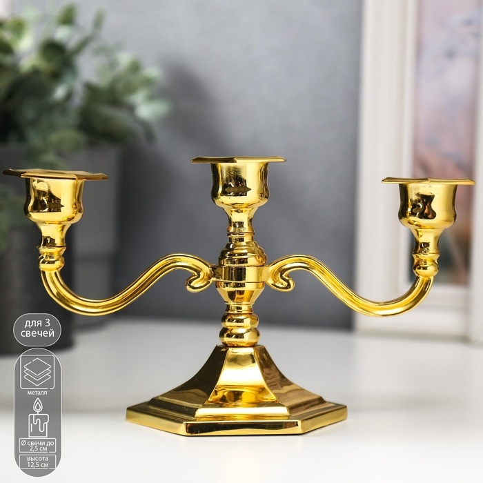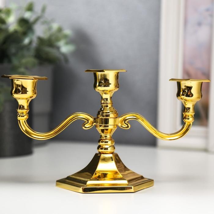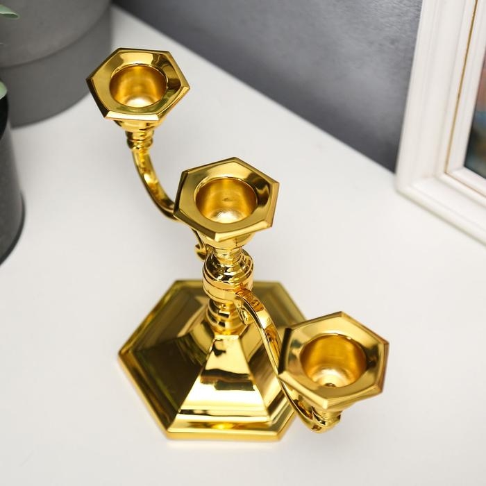 Подсвечник металл на 3 свечи "Чёткие линии" цвет золото 12,5х21,5х10 см