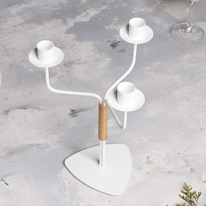 Подсвечник металл на 3 свечи "Шандал", 26,2х20,5 см, белый