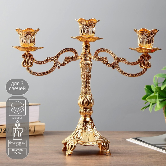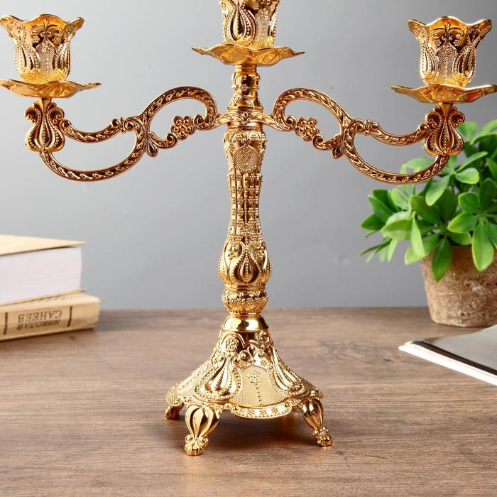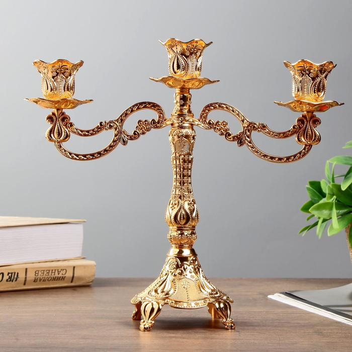 Подсвечник металл на 3 свечи "Узорный" цвет золото 25х27,5х9 см