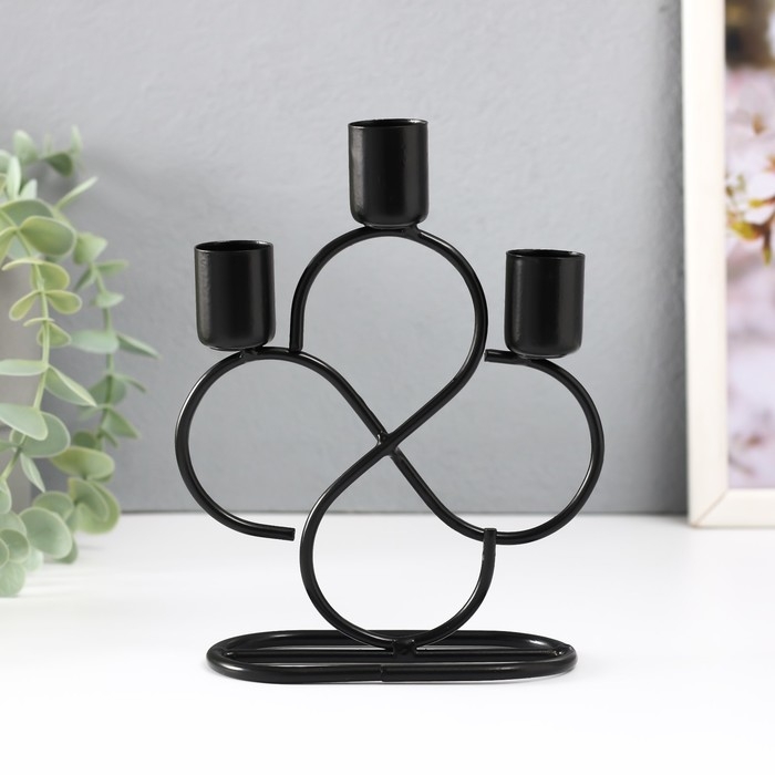 Подсвечник металл на 3 свечи "Завитки" d=2 см чёрный 14х6х16,5 см