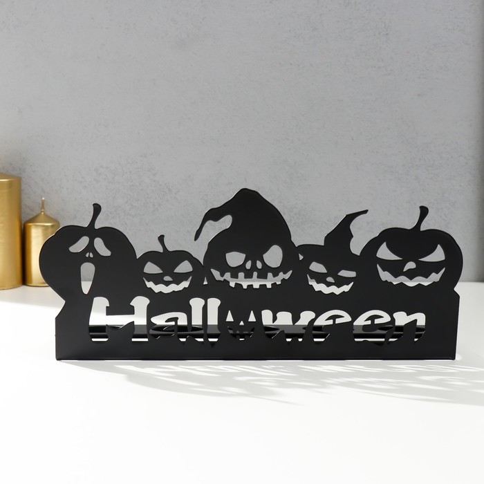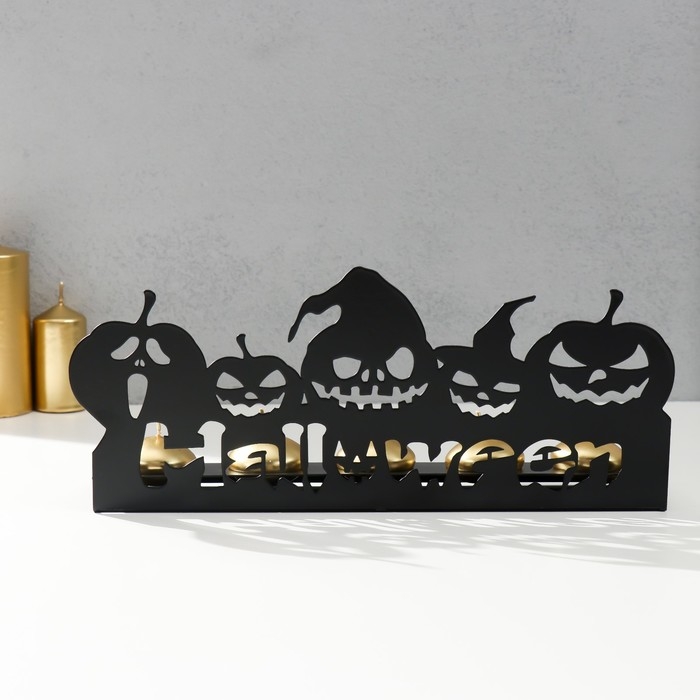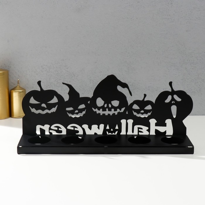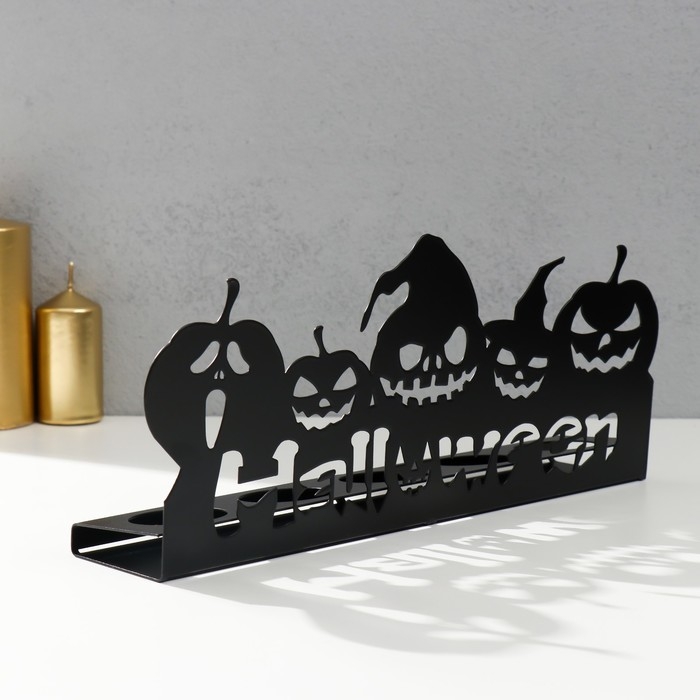 Подсвечник металл на 5 свечей "Хэллоуин. Тыковки" чёрный 14х29,5х6 см
