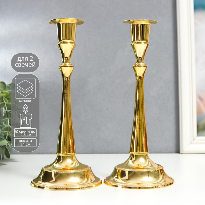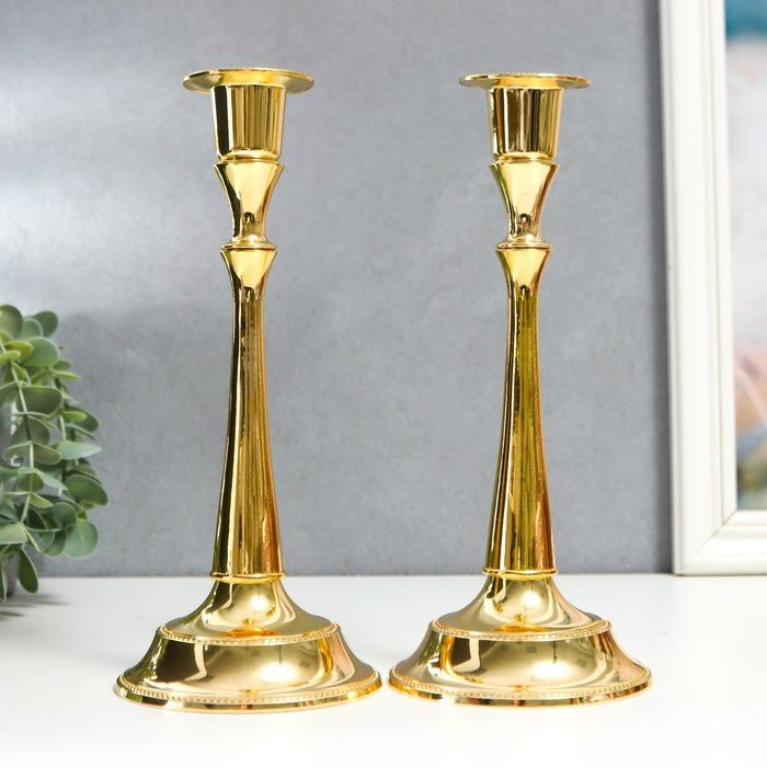 Подсвечник металл "Плавность" золото набор 2 шт 24х10х10 см