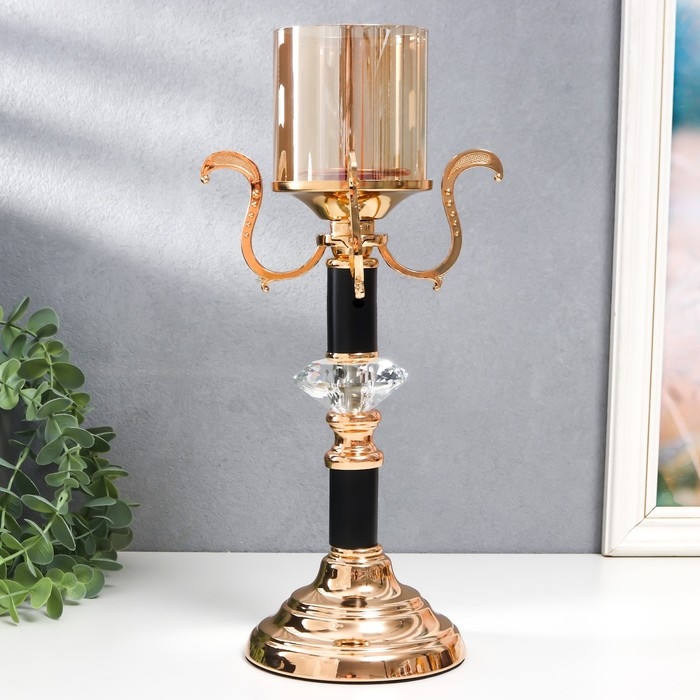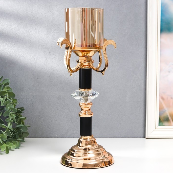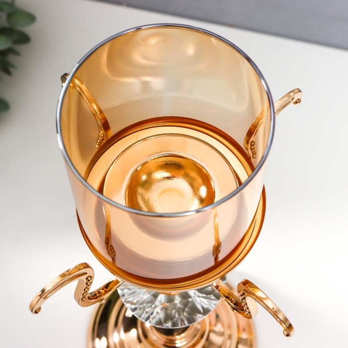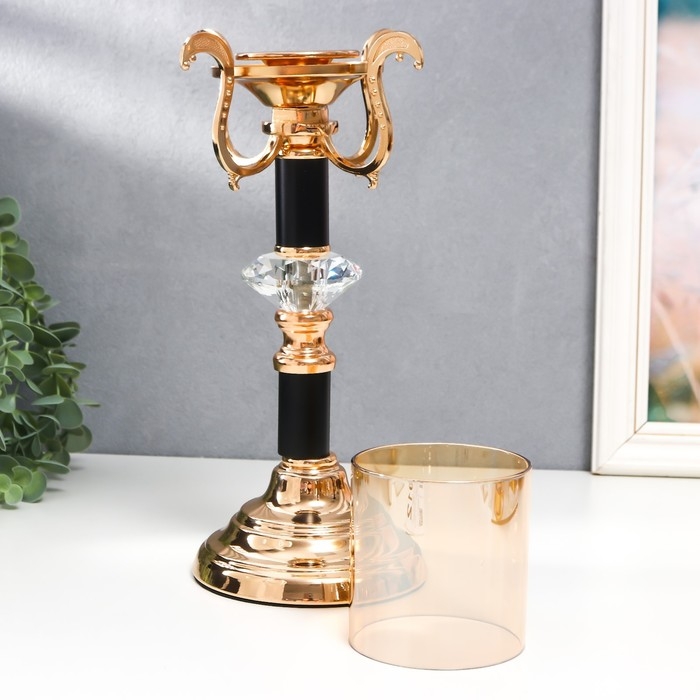 Подсвечник металл, стекло на 1 свечу "Карино" d-7 см, золото 15,5х15,5х33 см