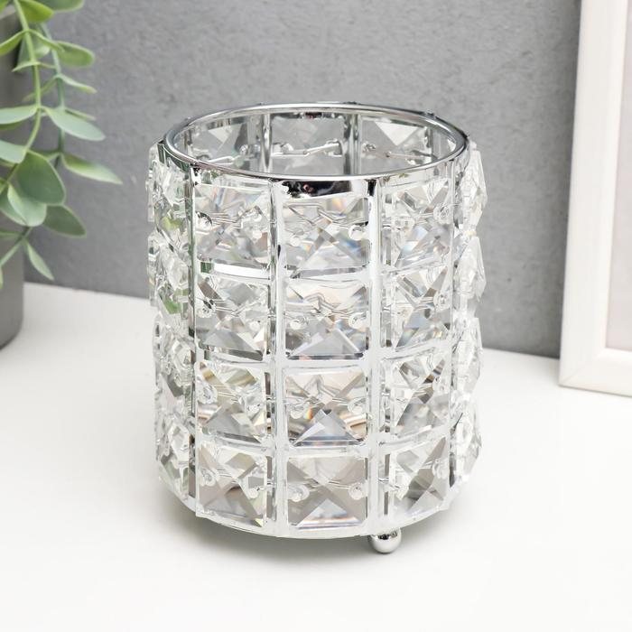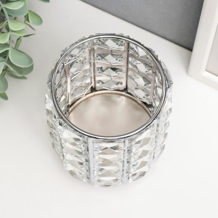 Подсвечник металл, стекло на 1 свечу "Кристаллы и цилиндр" серебро 12х10х10 см