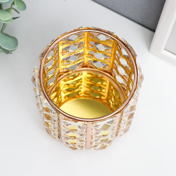 Подсвечник металл, стекло на 1 свечу "Кристаллы и цилиндр" золото 12х10х10 см