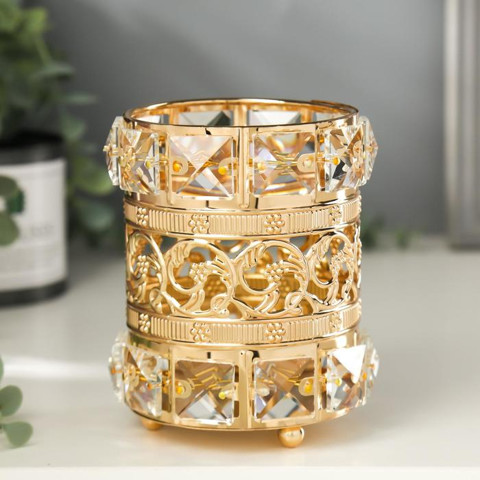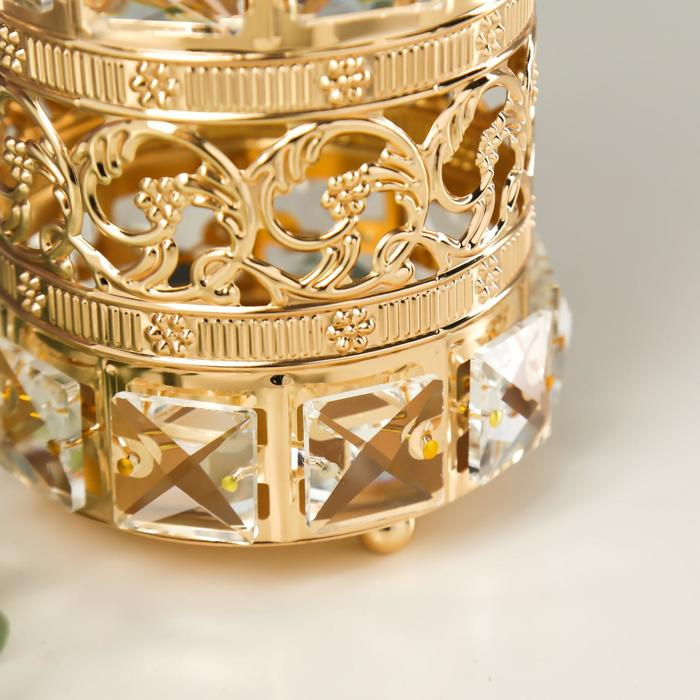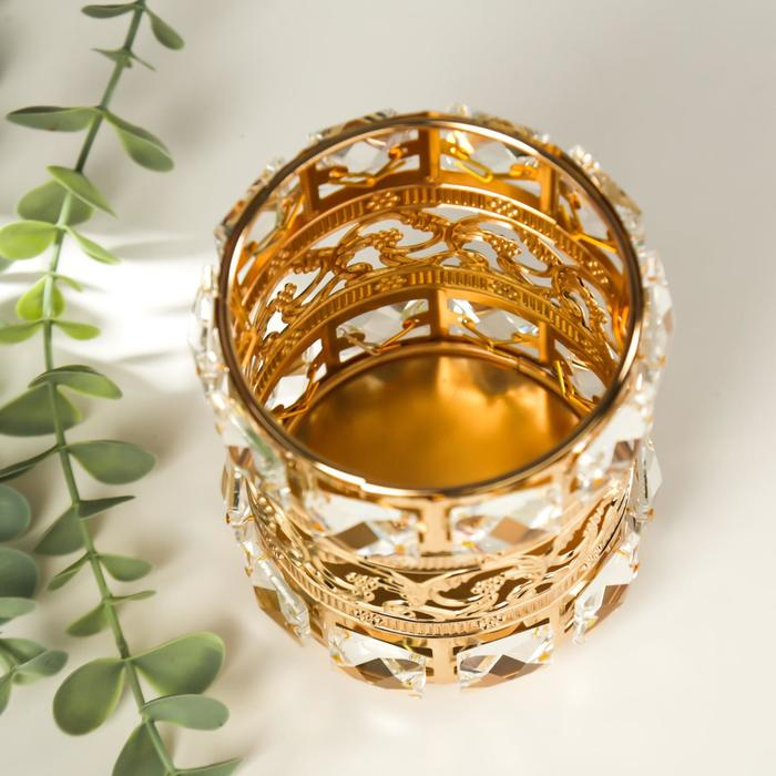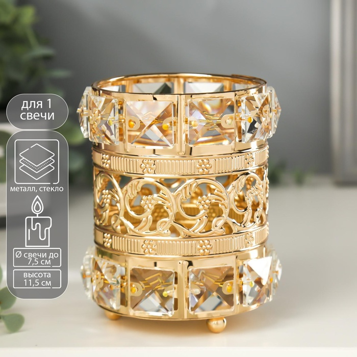 Подсвечник металл, стекло на 1 свечу "Кристаллы и цветы" золото 11,5х10х10 см
