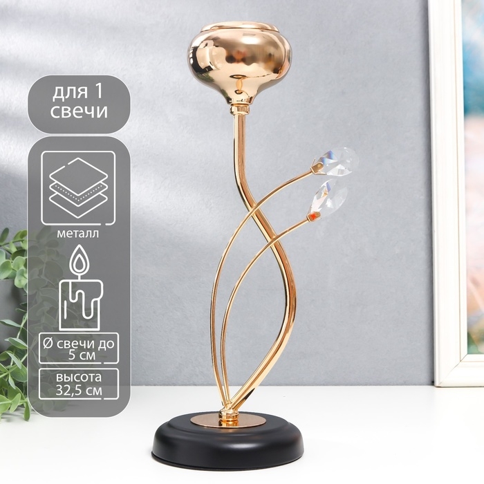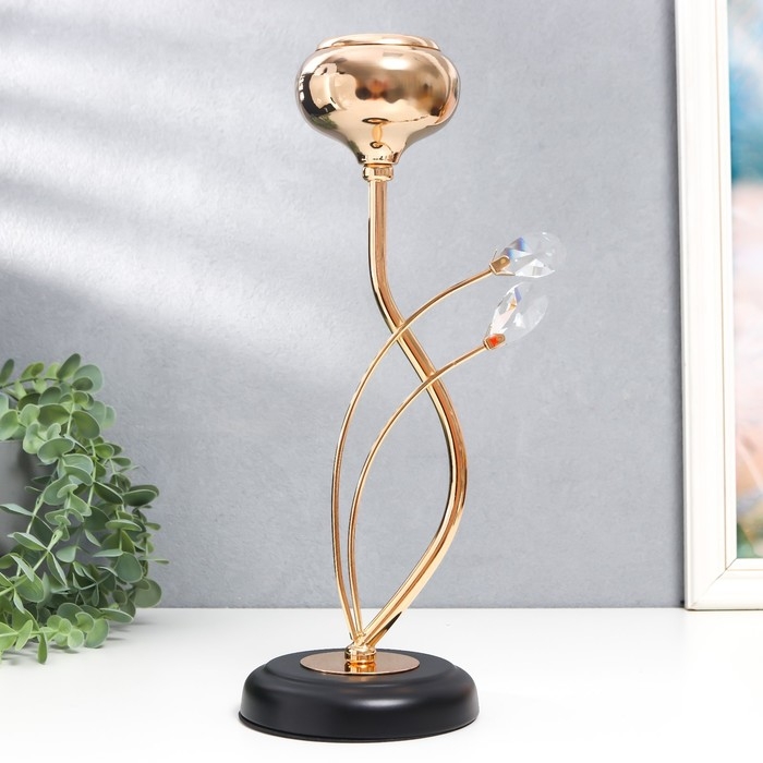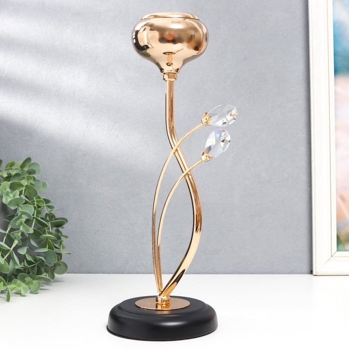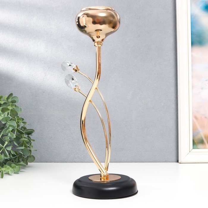 Подсвечник металл, стекло на 1 свечу "Паола" d-5 см, золото 11,5х11,5х32,5 см