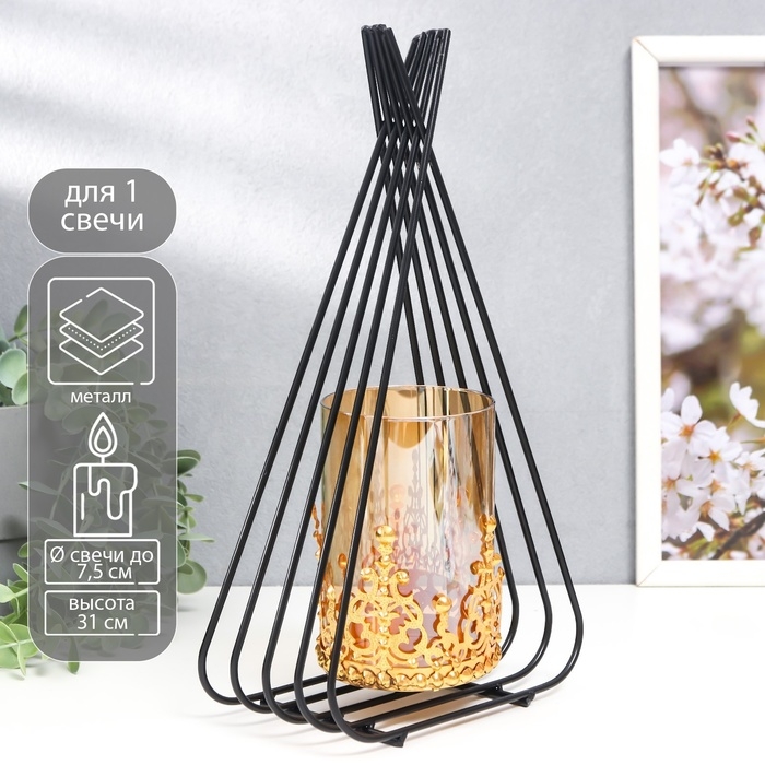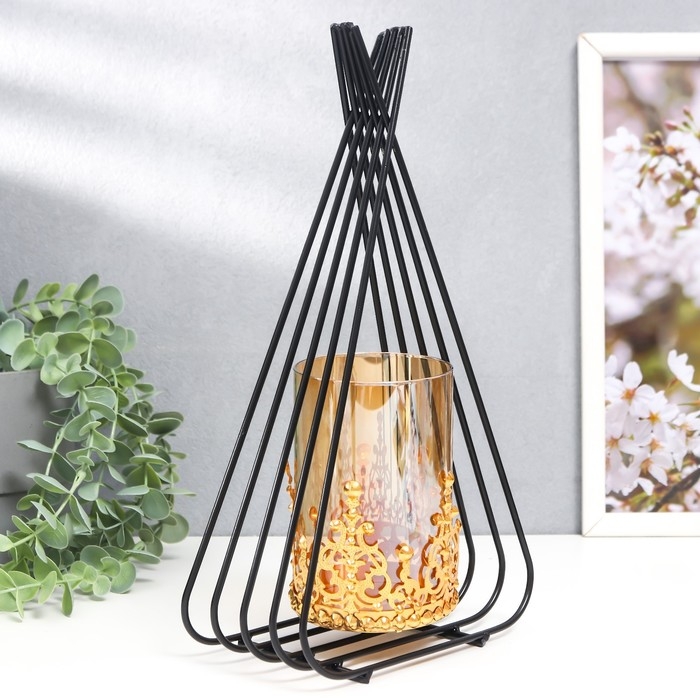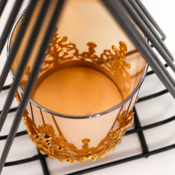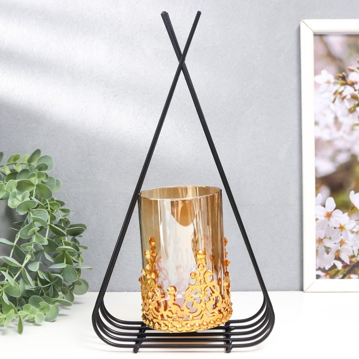 Подсвечник металл, стекло на 1 свечу "Пирамида" d-7,5 см, золото, чёрный 9х16,5х31 см