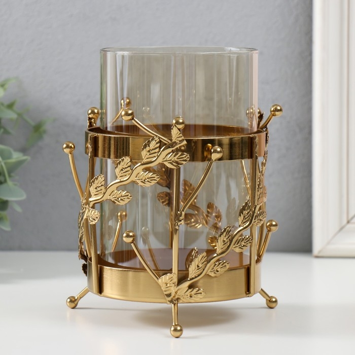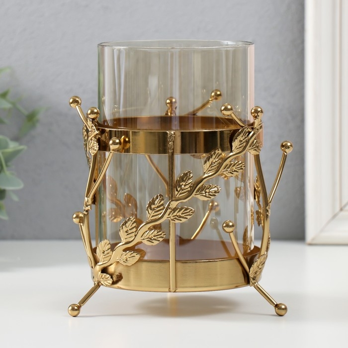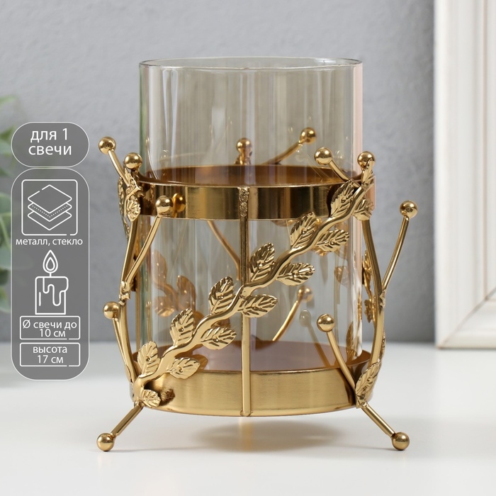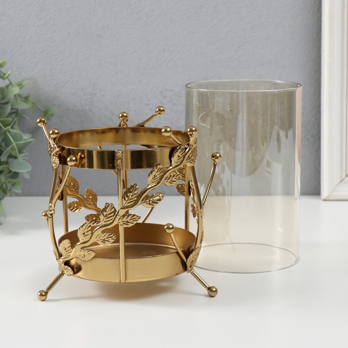 Подсвечник металл, стекло на 1 свечу "Веточки с шариками" d=10 см золото 14х17 см