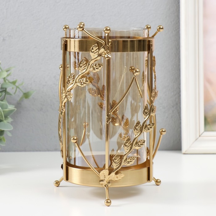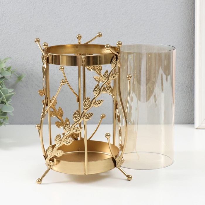 Подсвечник металл, стекло на 1 свечу "Веточки с шариками" d=10 см золото 20 см