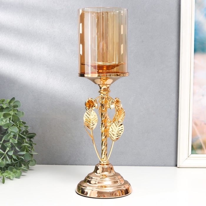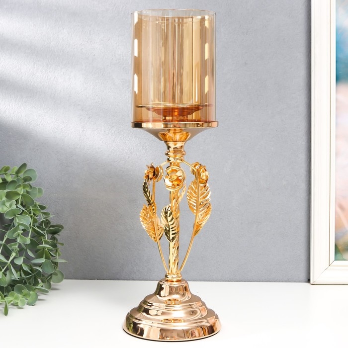 Подсвечник металл, стекло на 1 свечу "Вилас" d-8 см, золото 11,5х11,5х36,5 см