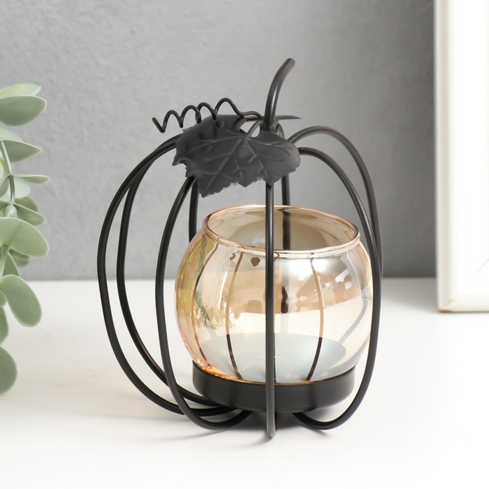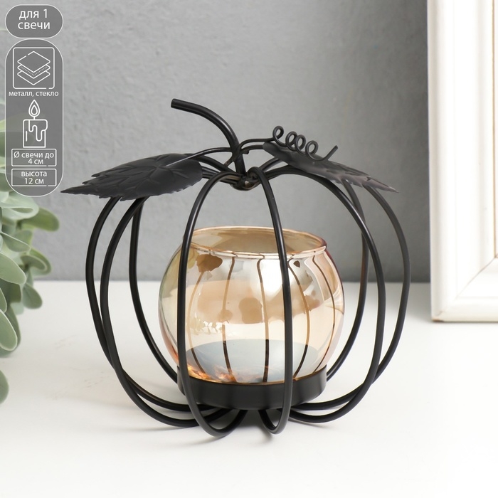 Подсвечник металл, стекло на 1 свечу "Яблочко" d-4 см 11х9х12 см