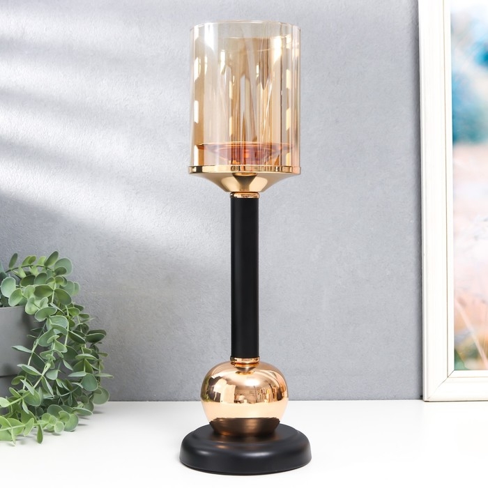 Подсвечник металл, стекло на 1 свечу "Жако" d-8,5 см, золото 11,5х11,5х38,5 см