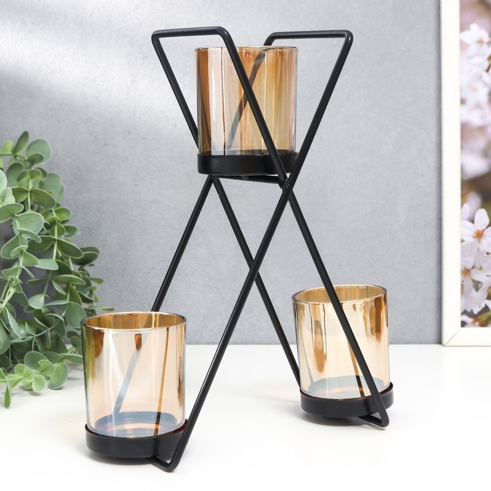 Подсвечник металл, стекло на 3 свечи "Гарна" d-5 см, чёрный 9х21х25 см