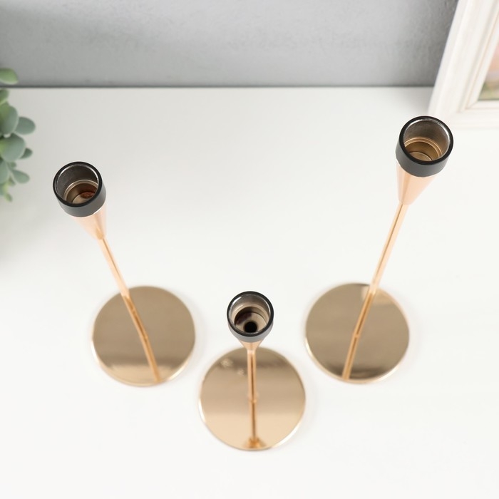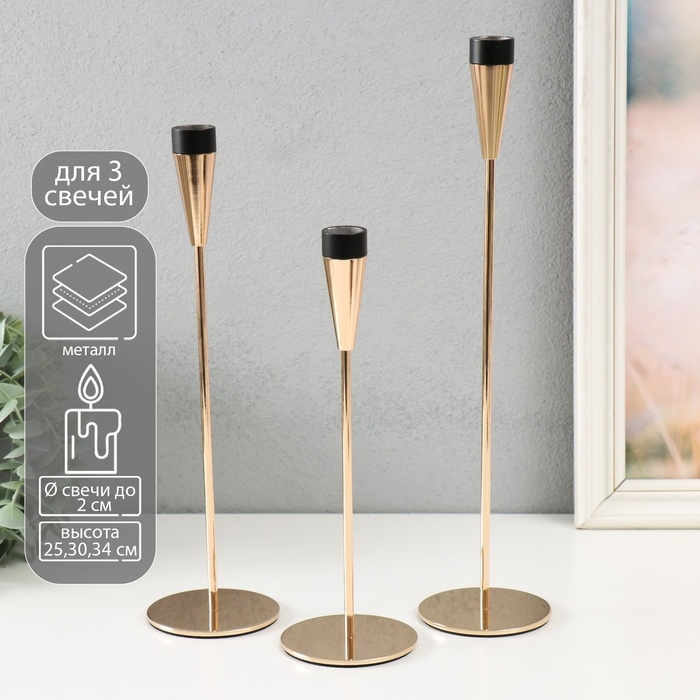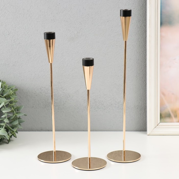 Подсвечник металл "Узкий бокал" d=2 см набор 3 шт золото с чёрным 25 см, 30 см, 34,8 см