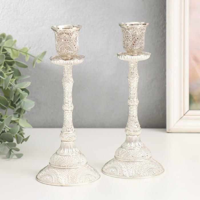 Подсвечник металл "Великолепный век" набор 2 шт цвет серебро 19х8х8 см