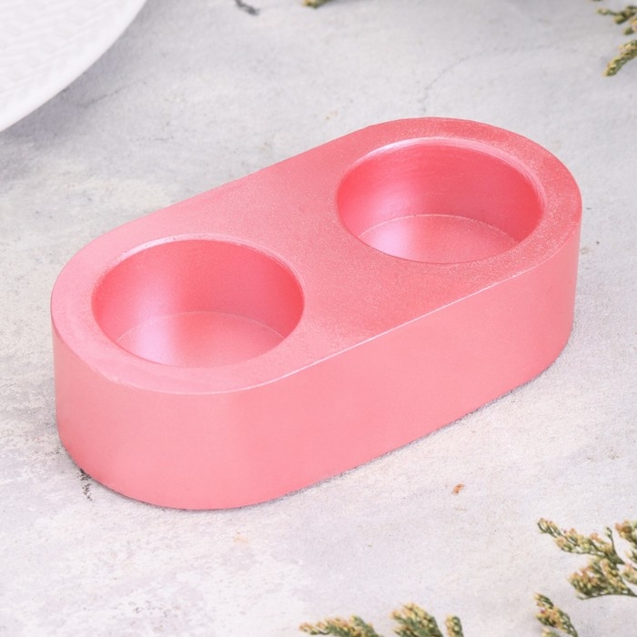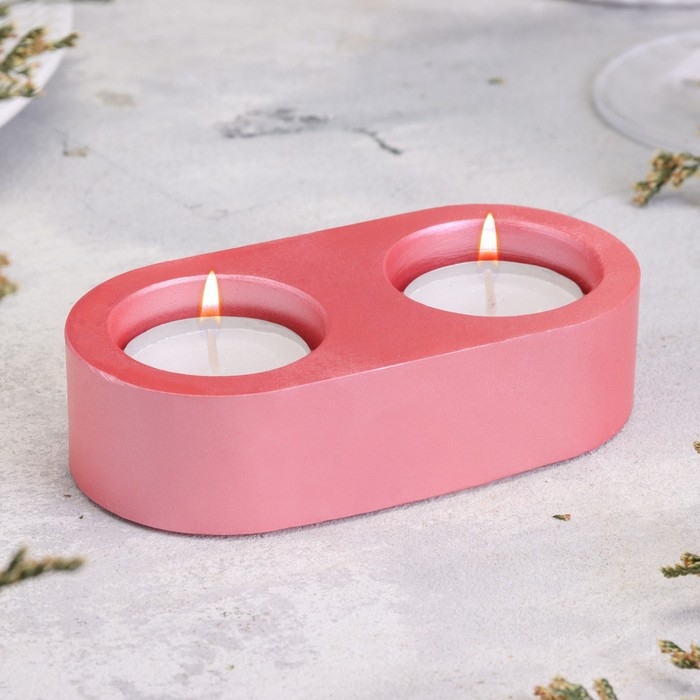 Подсвечник "Мрамор" из гипса для двух свечей овальный, 12х6х3см, розовый