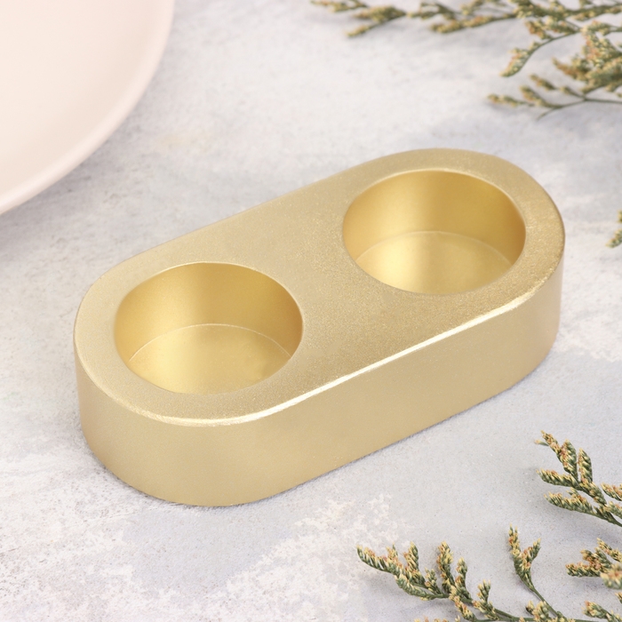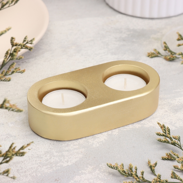 Подсвечник "Мрамор" из гипса для двух свечей овальный, 12х6х3см,золото