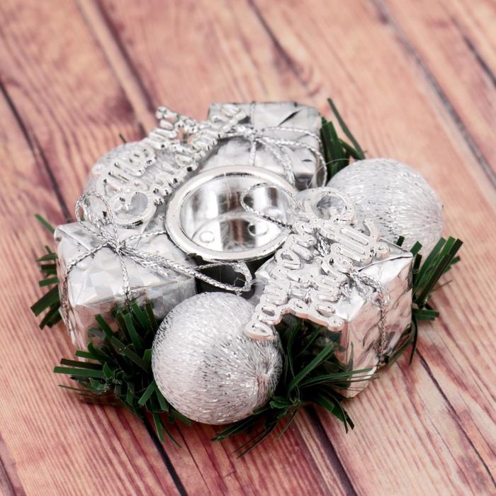 Подсвечник на одну свечу "Подарок" отв d-2 см, серебро — это оригинальное украшение для праздничного стола, а ещё это красивый новогодний подарок. Порадуйте себя и близких сказочным настроением!