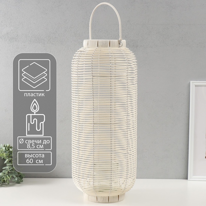 Подсвечник пластик "Фонарик. Плетёнка" белый 60х25х25 см