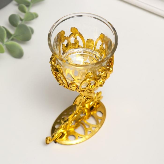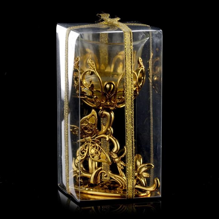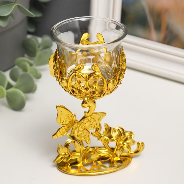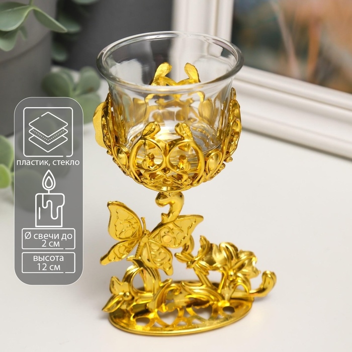 Подсвечник пластик, стекло "Бабочка" золото 12х7,5х6 см