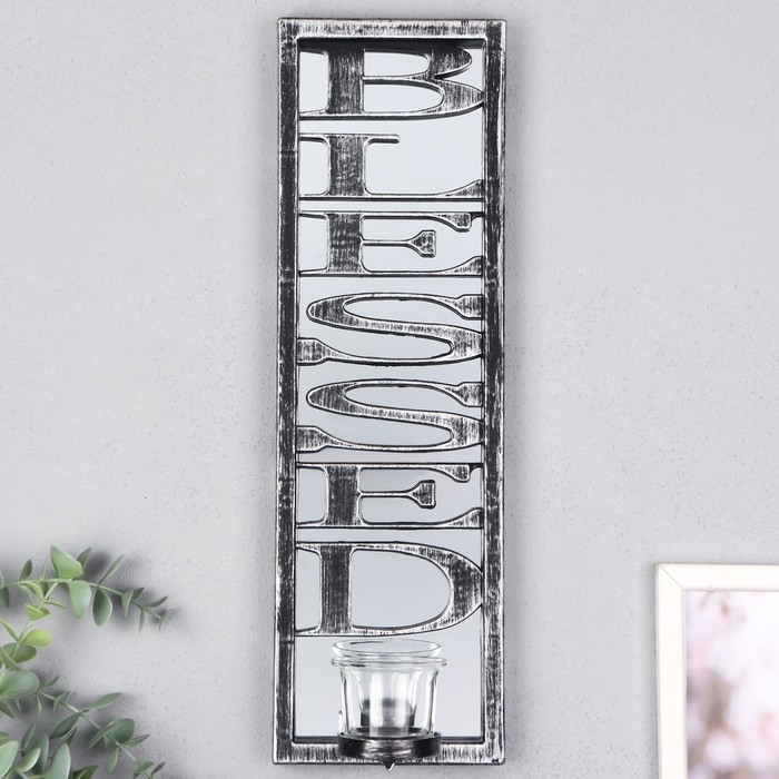 Подсвечник пластик, стекло на 1 свечу "Отражение благословения" d-4 см серебро 8х12х41 см