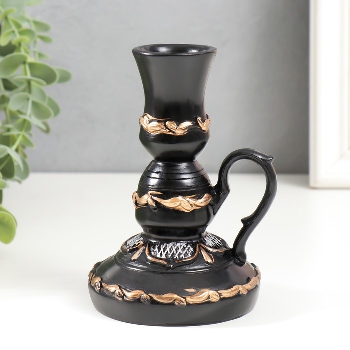 Подсвечник полистоун "Лампа с цветущим узором" d-3 см, чёрный 10х9х13,5 см