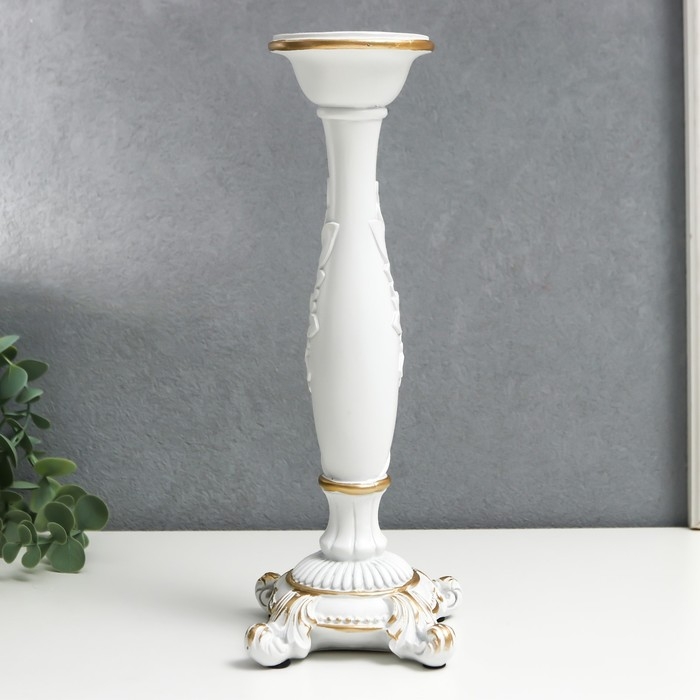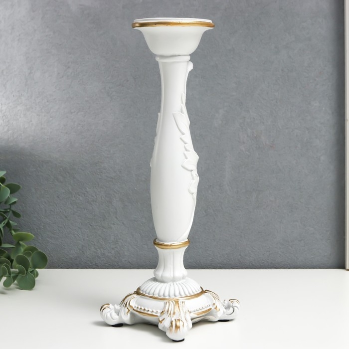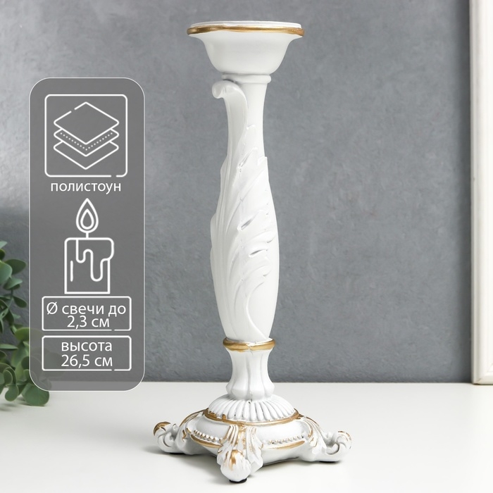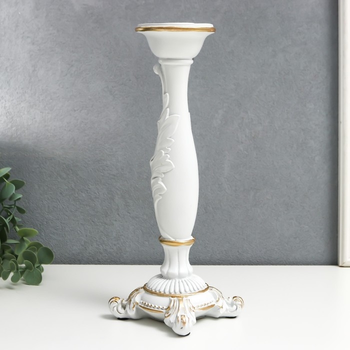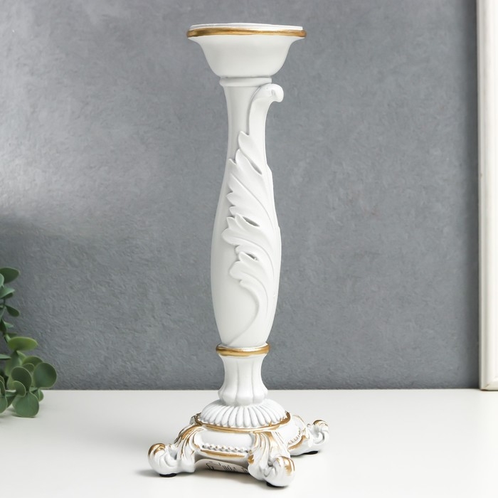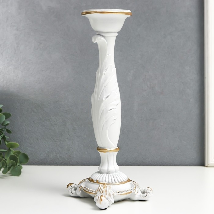 Подсвечник полистоун на 1 свечу "Пышный лист" белый 26,5х9х9 см