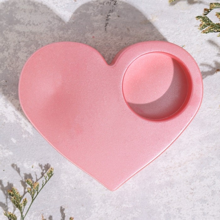 Подсвечник "Сердце большое. Мрамор" из гипса,10,5х9х4,5см,розовый