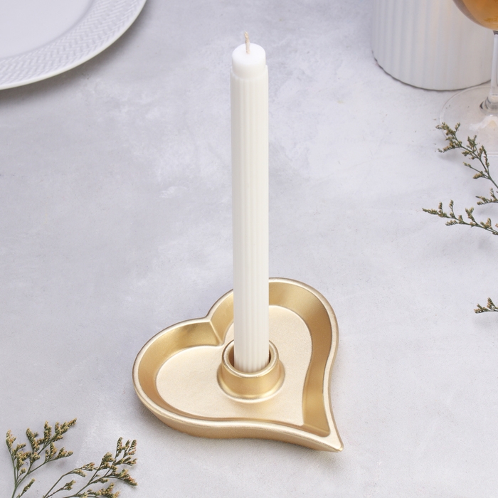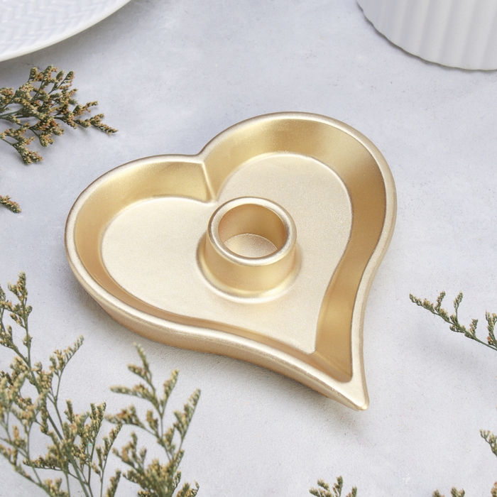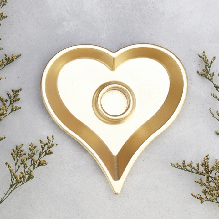 Подсвечник "Сердце" из гипса,14х2,5см,золото