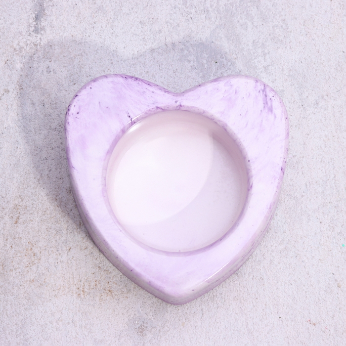 Подсвечник "Сердце малое. Мрамор" из гипса,7х3см,мрамор с фиолетовыми поллосками
