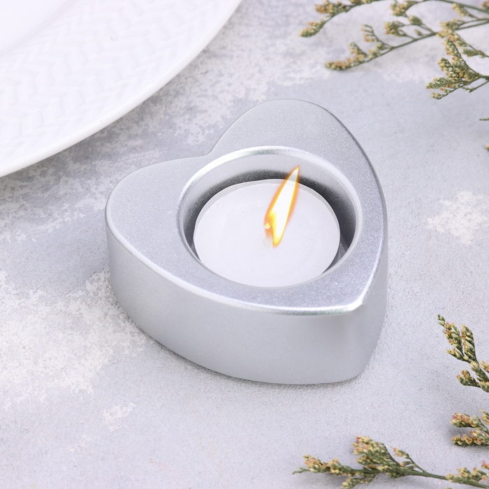Подсвечник "Сердце малое. Мрамор" из гипса,7х3см,серебро