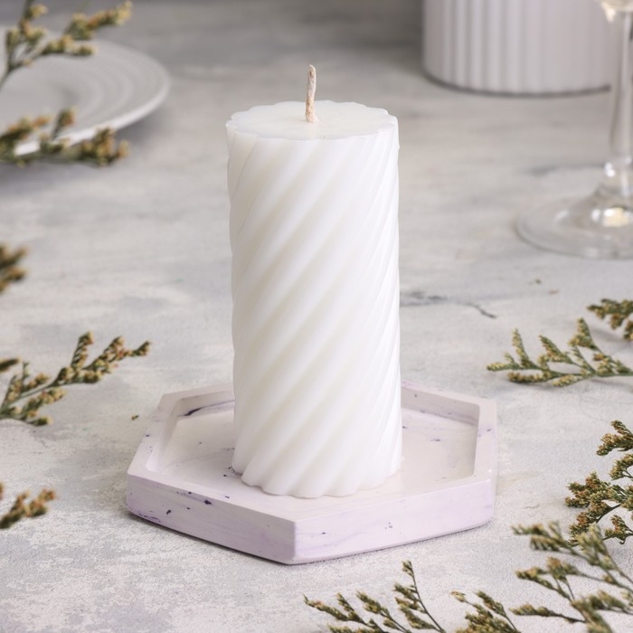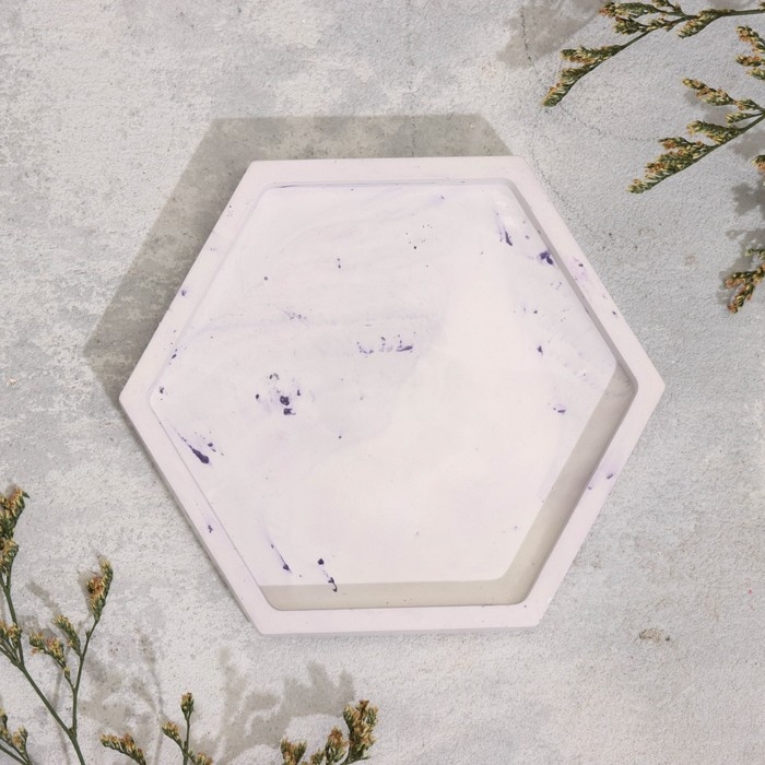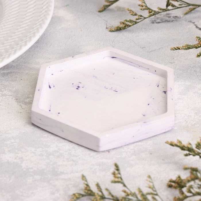 Подсвечник "Шестигранник. Мрамор" из гипса,9,7х11,3х1см,мрамор с фиолетовыми полосками