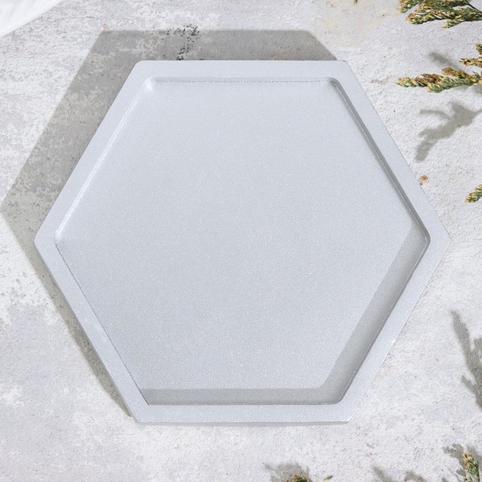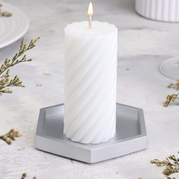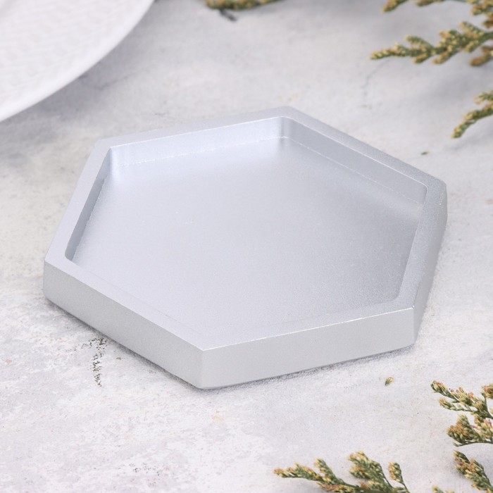 Подсвечник "Шестигранник. Мрамор" из гипса,9,7х11,3х1см,серебро