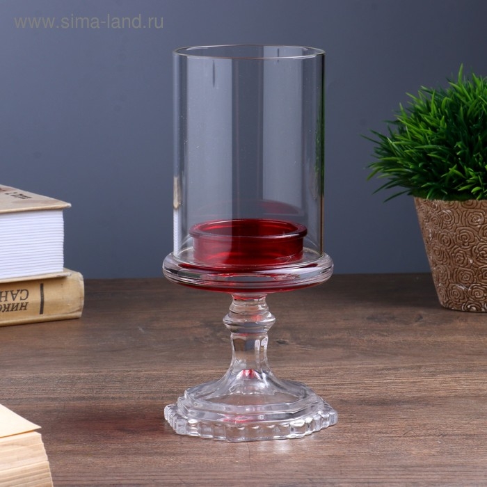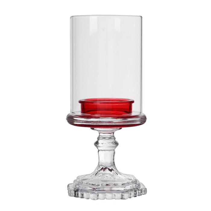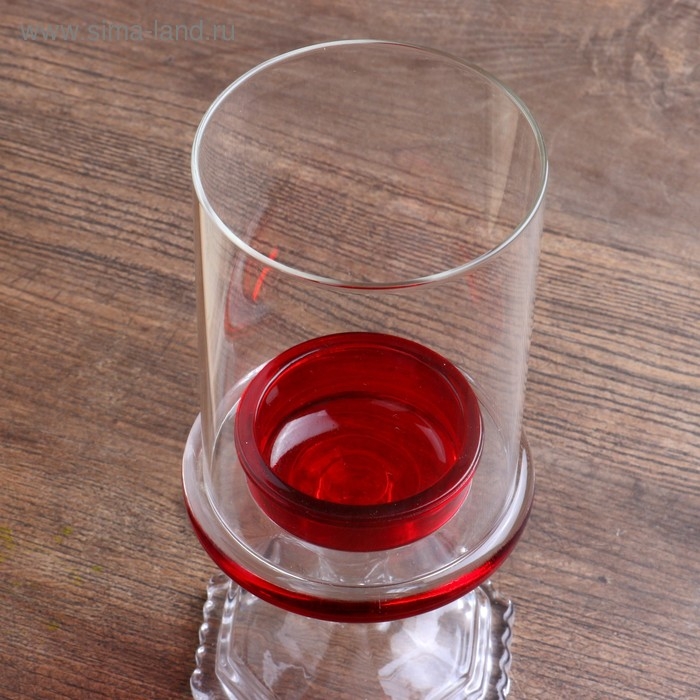 Подсвечник стекло на 1 свечу "Бокал на ножке" красный 18х8,5х5 см