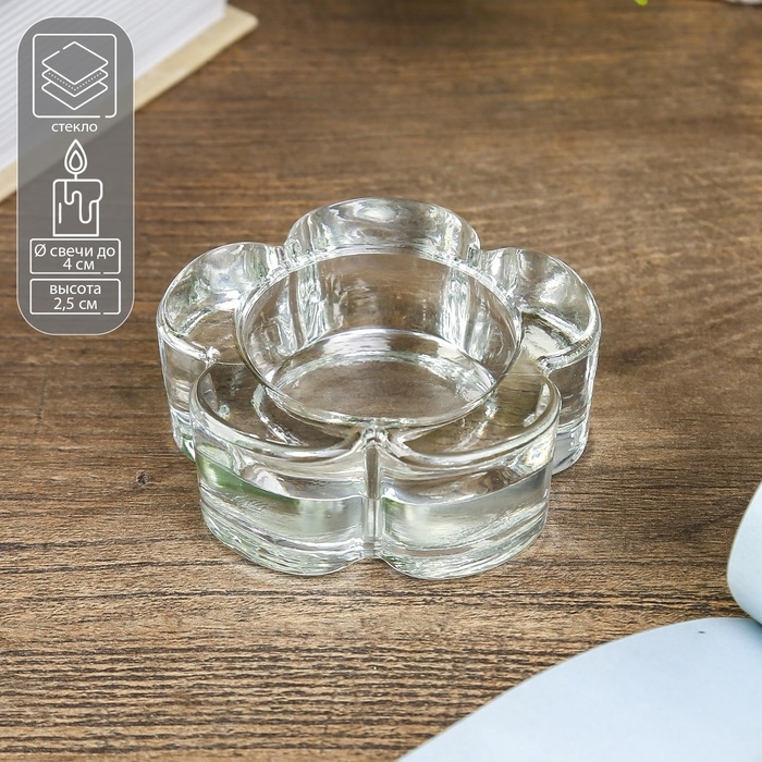 Подсвечник стекло на 1 свечу "Цветок" прозрачный 2,5х6,5х6,5 см