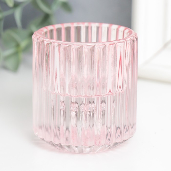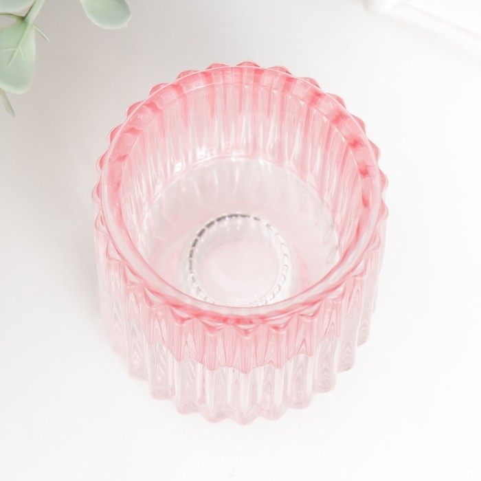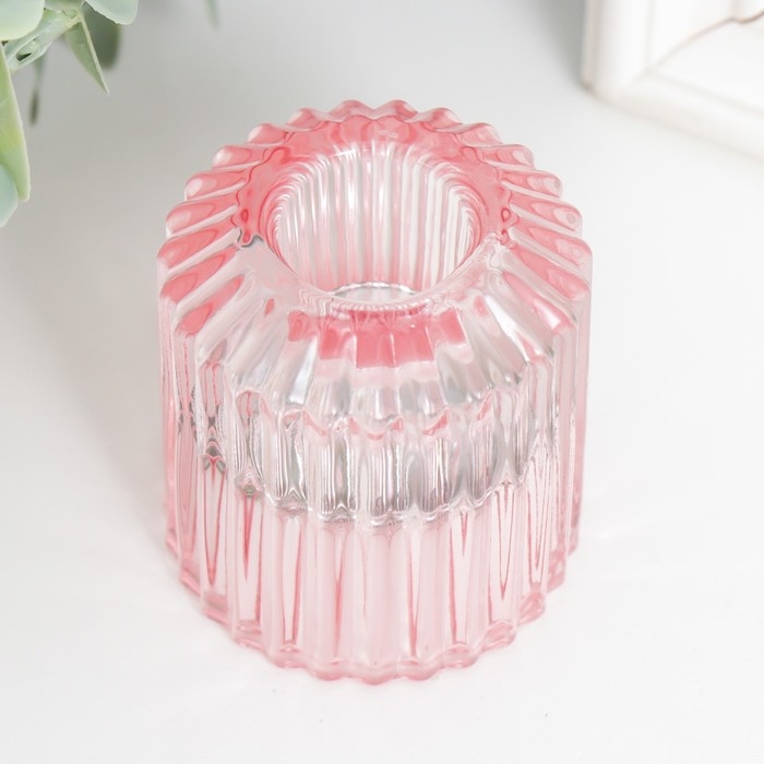 Подсвечник стекло на 1 свечу "Долли" d-2,5 см, 4 см розовый 6х5х5 см