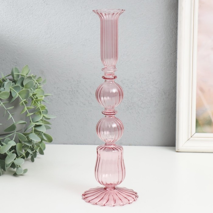 Подсвечник стекло на 1 свечу "Эстетика - два шара" прозрачный розовый 25х8,5х8,5 см
