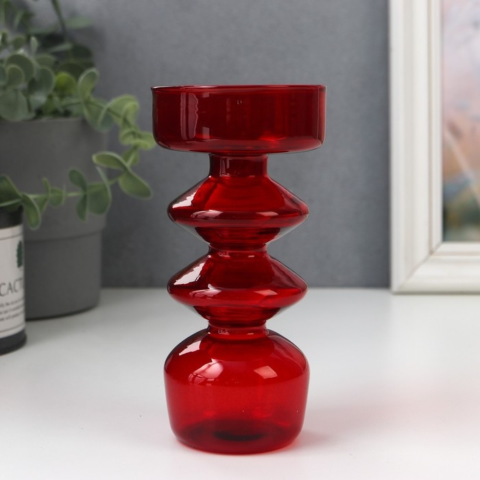 Подсвечник стекло на 1 свечу "Фигурный" красный 14,5х7х7 см