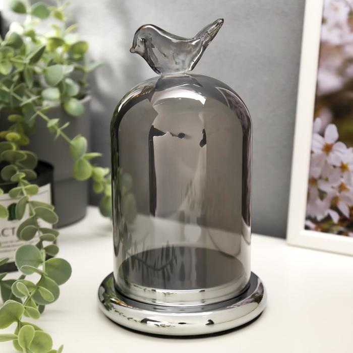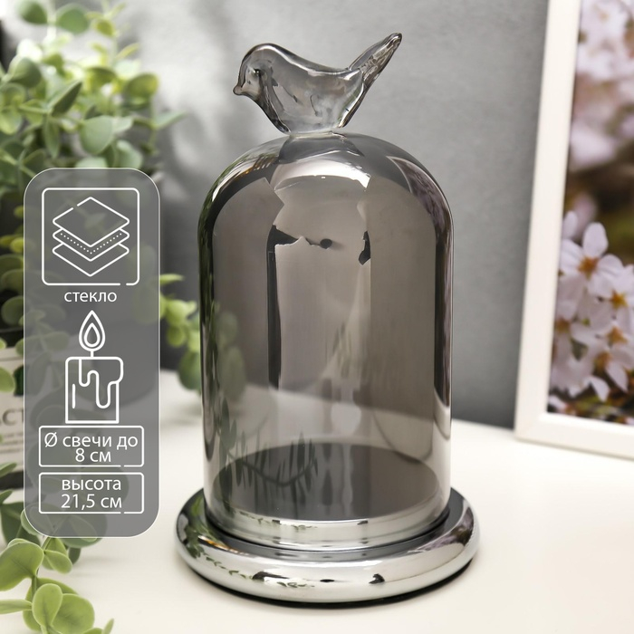 Подсвечник стекло на 1 свечу "Колба с птичкой" серебристая дымка 21,5х12,5х12,5 см