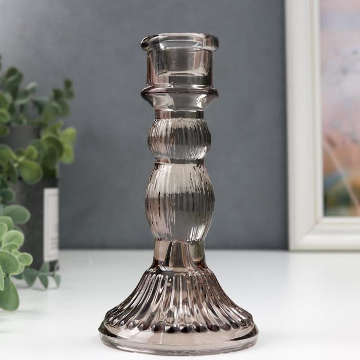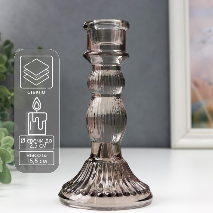 Подсвечник стекло на 1 свечу "Колонна с шарами" серый прозрачный 15,5х8,5х8,5 см