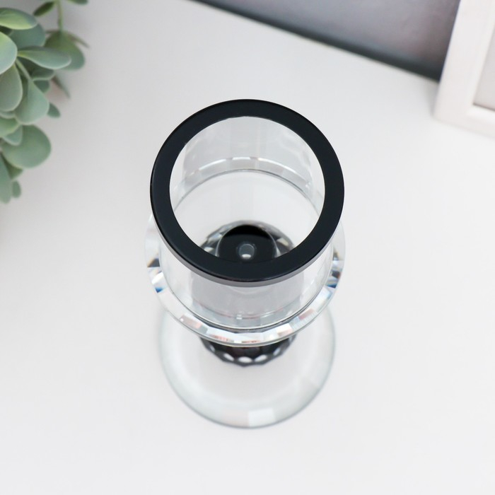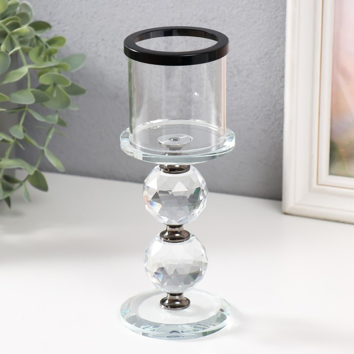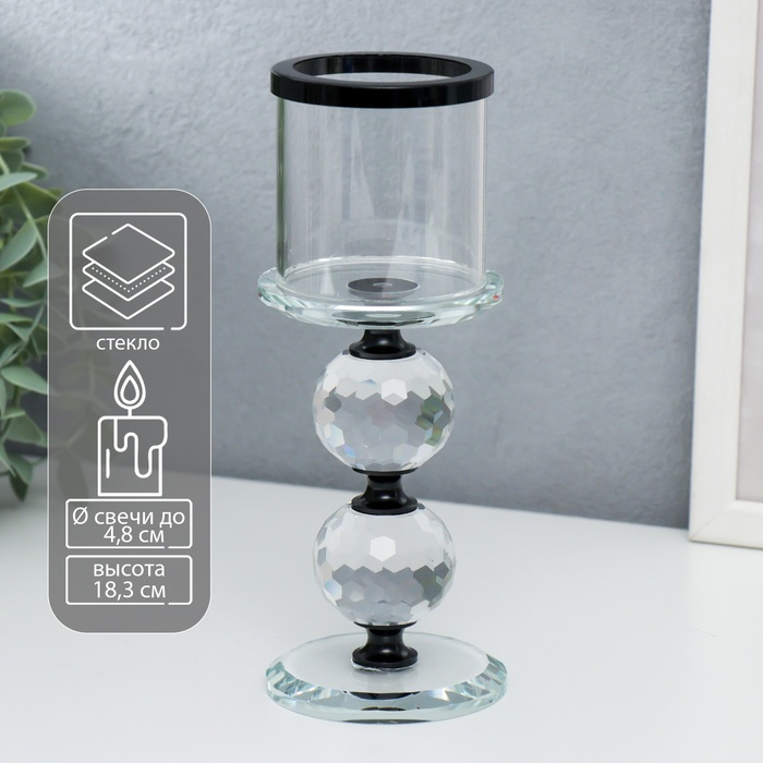 Подсвечник стекло на 1 свечу "Кристалл шар" чёрные вставки 18,3х7х7 см