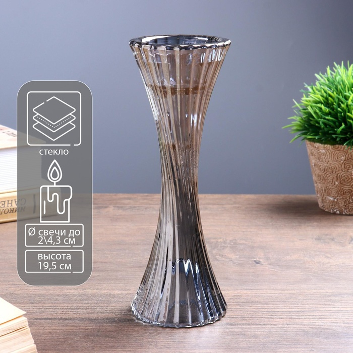 Подсвечник стекло на 1 свечу "Виток" графит 19,5х7х7 см