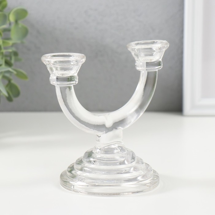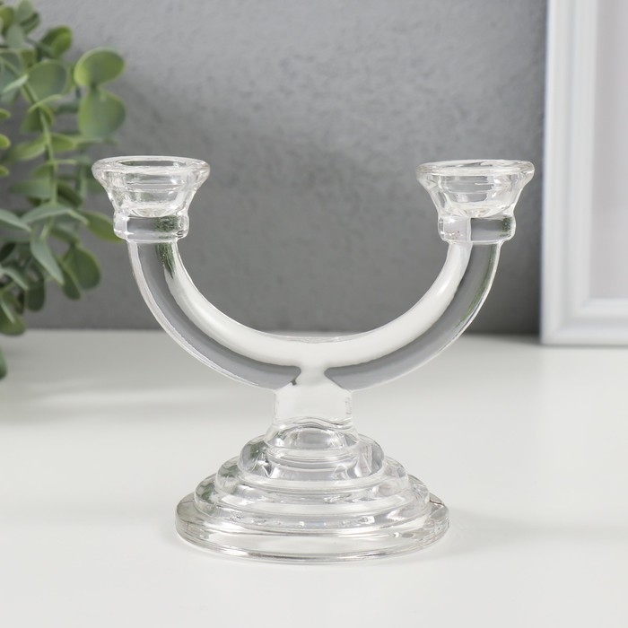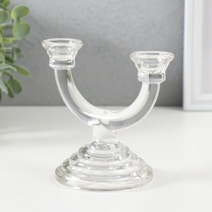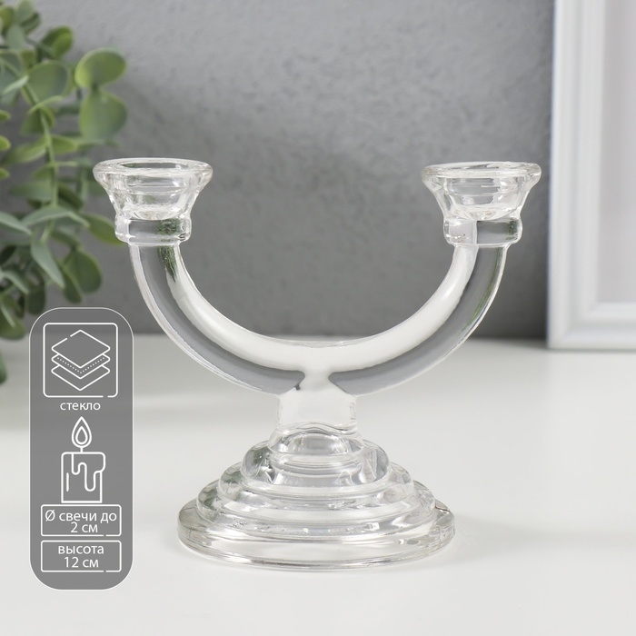 Подсвечник стекло на 2 свечи "Фраппе" прозрачный 9х14х12 см