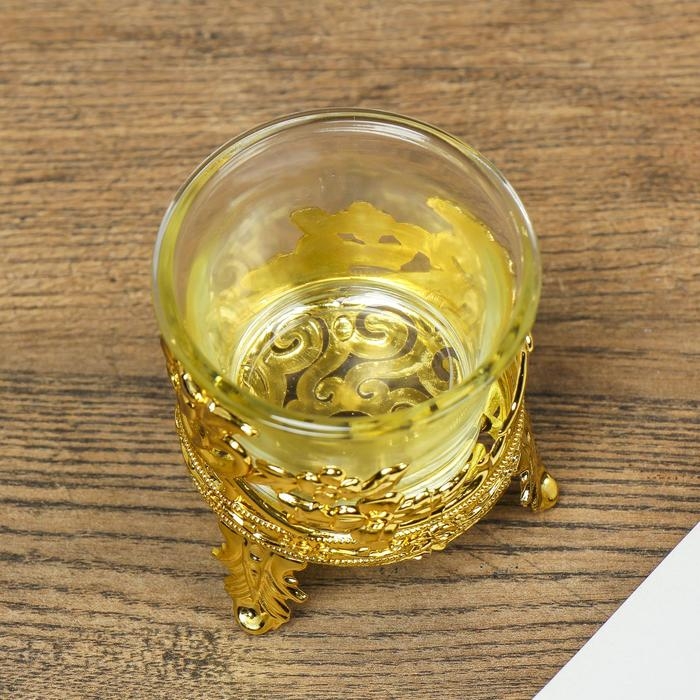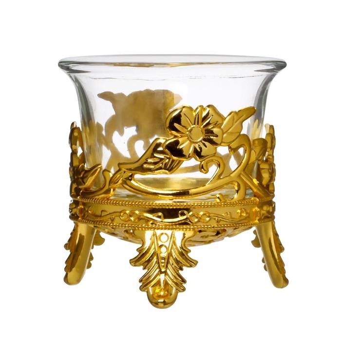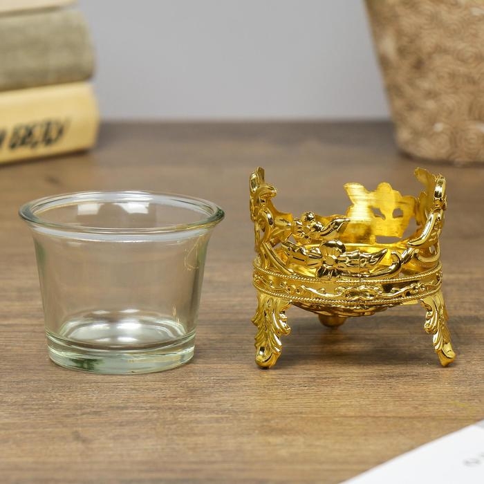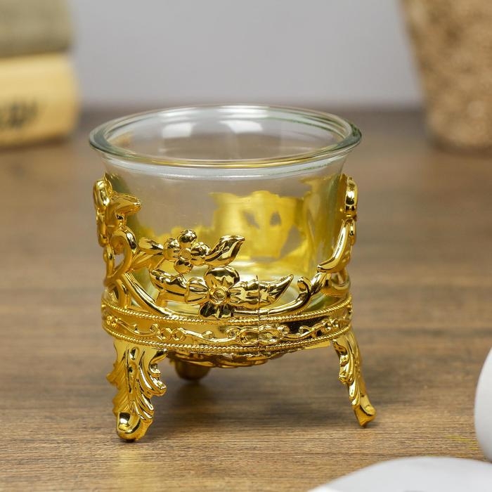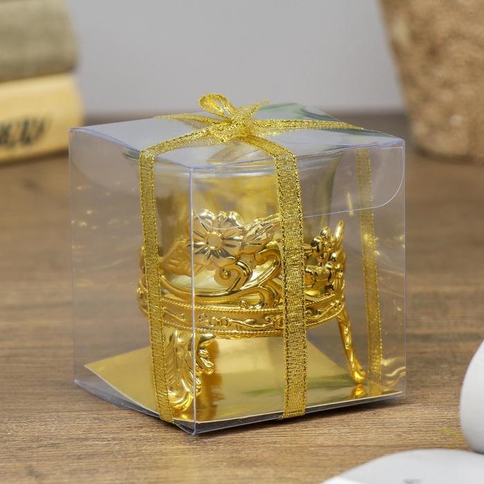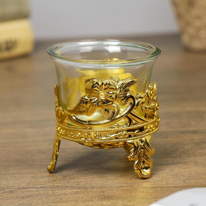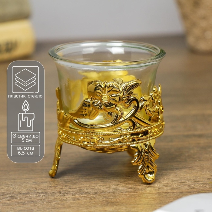 Подсвечник стекло, пластик на 1 свечу "Цветочек" золото 6,5х6х6 см
