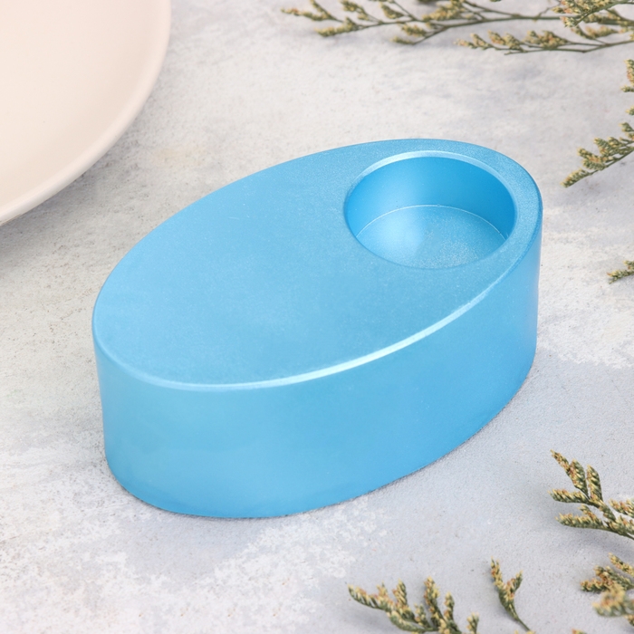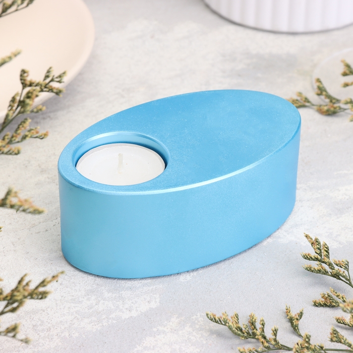 Подсвечник "Узкий овал. Мрамор" из гипса,11,5х7х4см,голубой