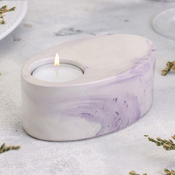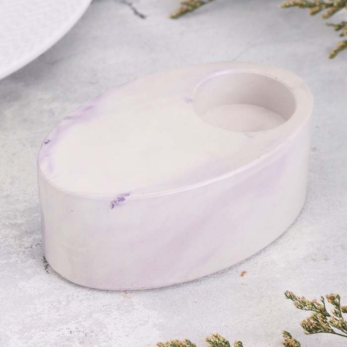 Подсвечник "Узкий овал. Мрамор" из гипса,11,5х7х4см, мрамор с фиолетовыми полосками