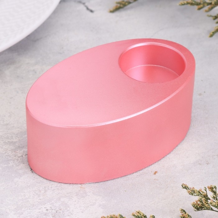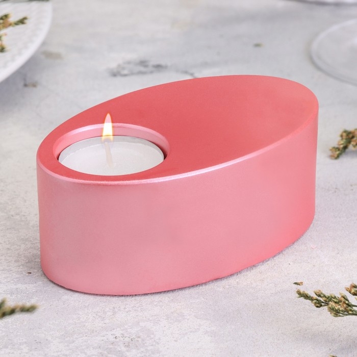 Подсвечник "Узкий овал. Мрамор" из гипса,11,5х7х4см,розовый